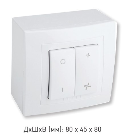 Переключатель скоростей для управления двухскоростными вентиляторами. Применяется для управления вентиляторами Soler&Palau серии TD и TD-Silent, так же подходит для управления другими вентиляторами имеющими двухскоростные моторы. Позволяет включить-выключить вентилятор и поочередно использовать одну из двух скоростей.