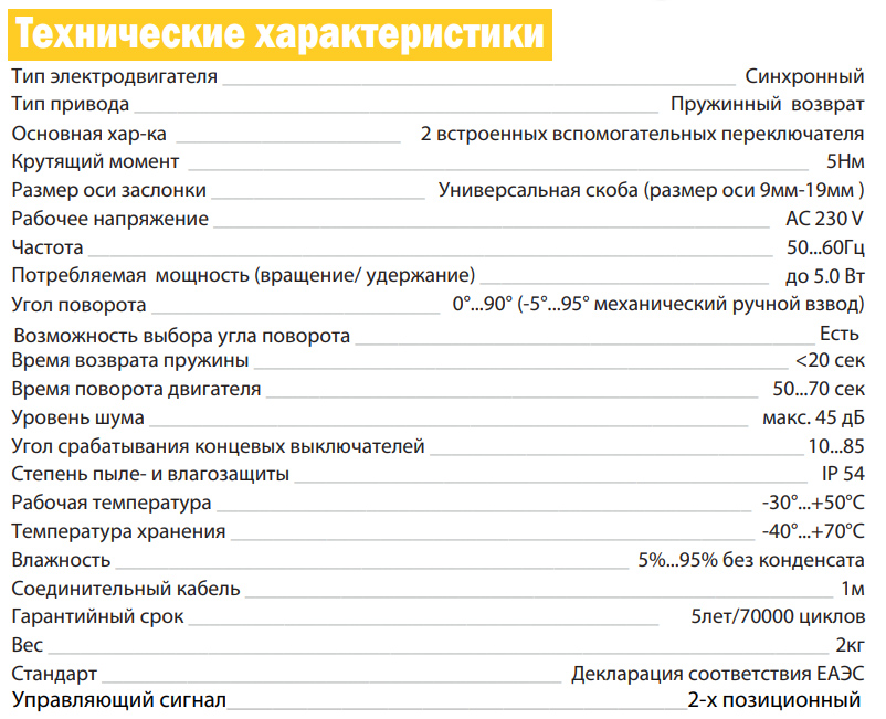 Этот привод заслонки с пружинным возвратом специально разработан для малых и средних конечных воздушных заслонок и блоков управления системой подачи воздуха. Он часто используется в местах с ограниченным пространством из-за его небольшого размера и гибкости управления.