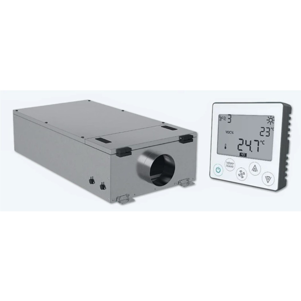 Установка оснащена встроенной системой управления, укомплектована настенной сенсорной панелью управления с диагональю экрана 4 дюйма, которая обеспечивает стабильную работу установки. Установки могут применяться для вентиляции жилых, административных и производственных помещений. Корпус выполнен из листовой оцинкованной стали и покрыт порошковой краской RAL 7024. Звуко-теплоизоляция корпуса толщиной 25 или 50 мм из базальтовой минеральной ваты.